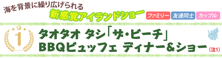 (注1)タオタオ タシ「ザ・ビーチ」BBQ ビュッフェディナー&ショーとスーパーマリンリゾートココスはデラックスクラスホテル(Ciao東京発パンフレット最新号参照)以上に滞在の方のみ