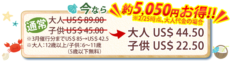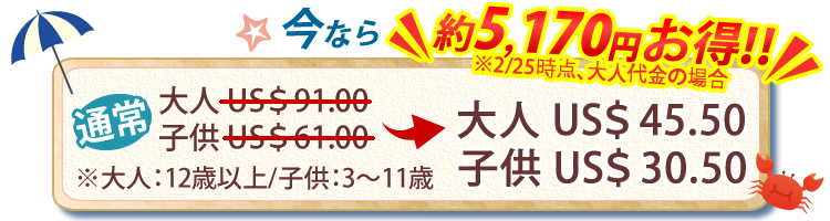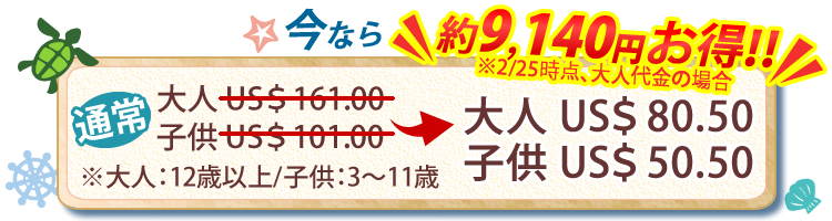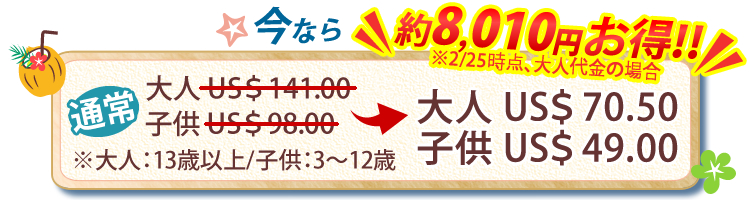 ※対象商品は北海道(PC-、PN-、PK-)発H.I.S.旅行企画・実施のハワイ、グアム、沖縄のパッケージツアーです。但し、WEB限定商品とフェア商品は対象外となります。