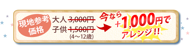 ※ご成約後に日程/参加者/氏名/性別などの変更・訂正が発生した場合は対象外となります。