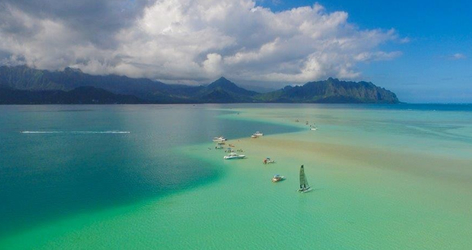 ハワイの海を知り尽くしたクルーと人気のサンドバーへ行こう!!許可されたツアーボートだけが行ける神秘的な場所「サンドバー」。滞在時間は約75分。のんびり過ごしたり、シュノーケルも楽しめます♪