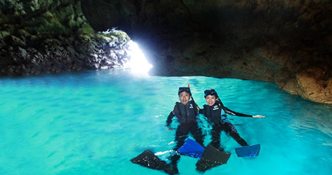気軽にシュノーケリングを楽しみながら、何種類もの『青』が光り輝いている洞窟の中へ!青の洞窟の中に、一歩足を踏み入れると、そこは別世界!